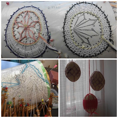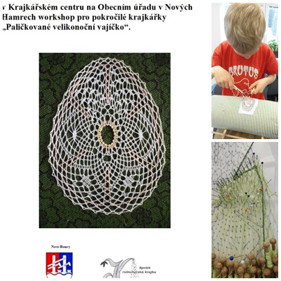 Paličkovala se čtyři různá velikonoční vajíčka. Složité pro pokročilé krajkářky, druhé vajíčko s pavoučky je o trochu jednodušší, malá vajíčka s výplněmi jako z krušnohorských krajek - řetízky s pikotkami ti zručnější mají už hotová. Poslední krajky jsou návleky ("košilky") na vyfouklá vajíčka a vzniknou tak neobvyklé kraslice.